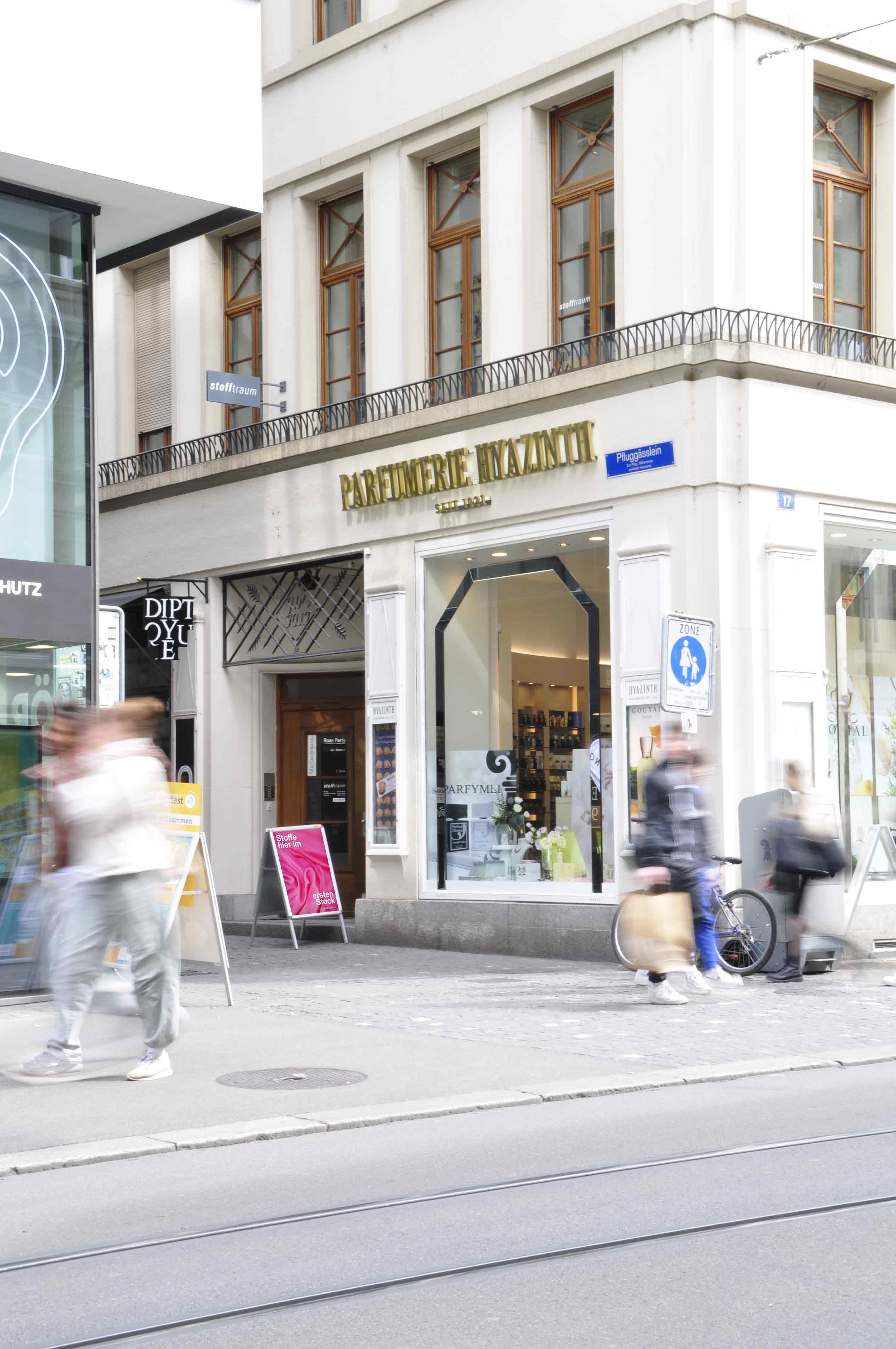 Das Pfluggässlein 5 befindet sich in der Basler Innerstadt und ist eine Quergasse zur Falknerstrasse, die vom Barfüsserplatz zur ehemaligen Hauptpost führt. Wir befinden uns im Eckhaus zum Pfluggässlein, im Haus zum Hut, oberhalb der Parfümerie Hyazinth im ersten Stock.
